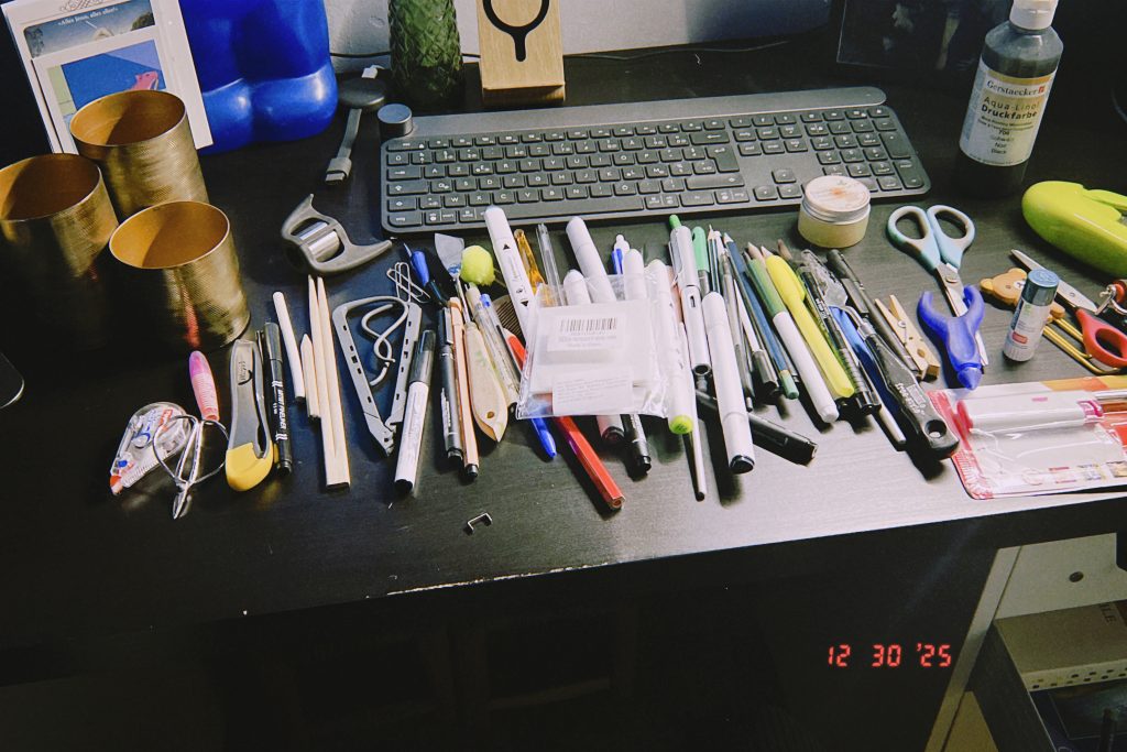Pas de réponse. J’ai installé mon nouveau bureau pour l’année 2026 et j’ai fait du tri dans mes nombreux tiroirs. C’est partiiii. La pile des choses dans mes tiroirs est en photos ci-dessous. Je n’ai pas tout mis.